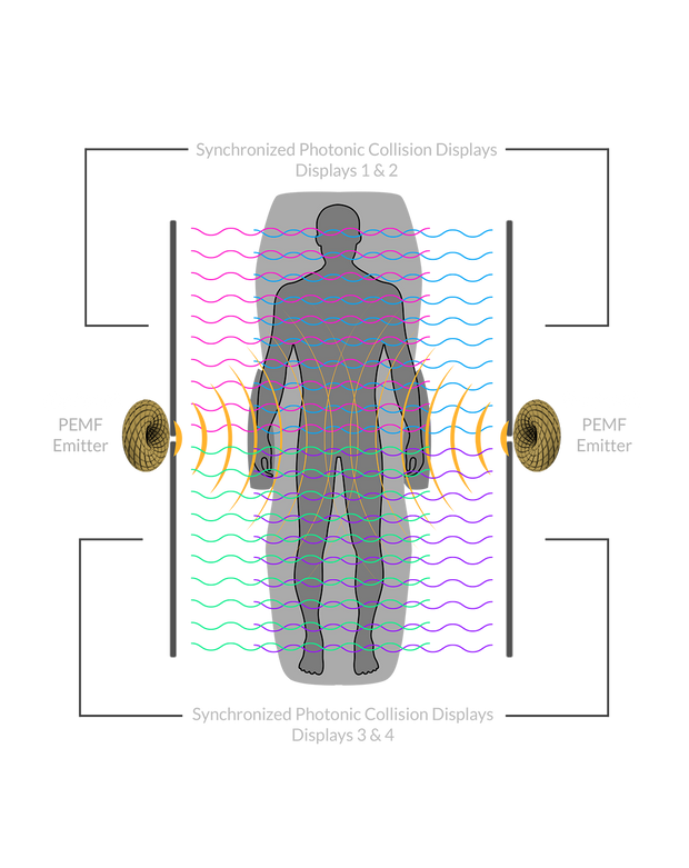 Engineered for performance and comfort, this system surrounds the user with four synchronized opposing full-spectrum panels to create a coherent bio-photonic environment — unlocking the body’s natural healing potential through the power of light.